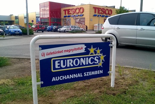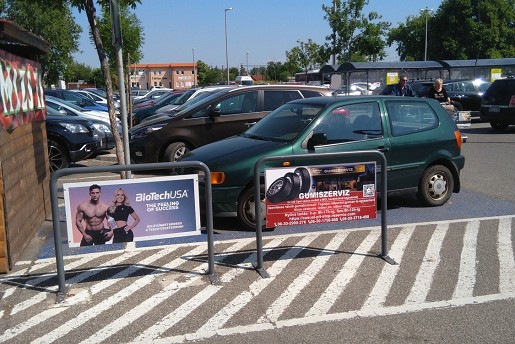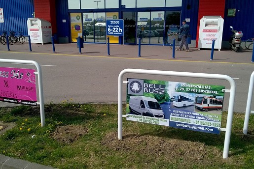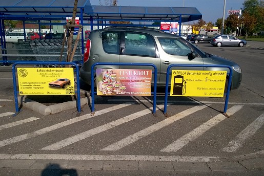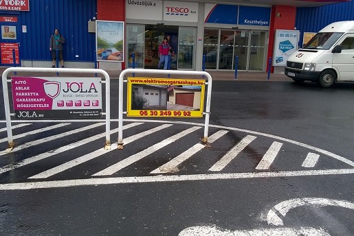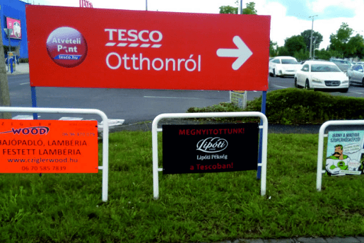 Kültéri reklámtáblák a Tesco áruházak parkolóiban, az ország egész területén